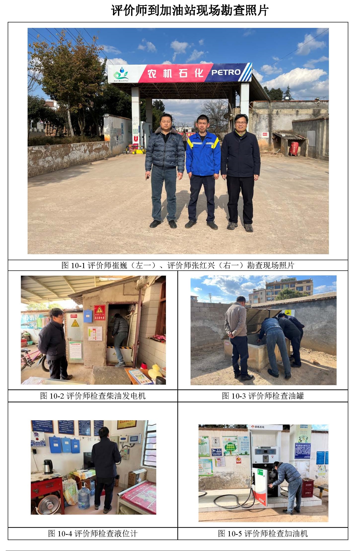 評價結論為:曲靖市沾益區大坡鄉農機管理服務站大坡加油站已完成本次評價發現的不符合項整改,站址選擇及平面布置、加油工藝及設施、消防設施、電氣及報警系統、建(構)筑物等方面符合《汽車加油加氣加氫站技術標準》(GB50156-2021)等標準規定;經營場所、危險化學品儲存設施、人員配置及培訓考核、安全管理制度、安全操作規程、應急預案、應急物資等方面滿足《危險化學品安全管理條例》(國務院令第591號,第645號修改)第三十四條、《危險化學品經營許可證管理辦法》(原國家安監總局令第55號公布,第79令號修正)第六條要求,從安全的角度曲靖市沾益區大坡鄉農機管理服務站大坡加油站具備危險化學品經營的安全條件。 | ||||||||