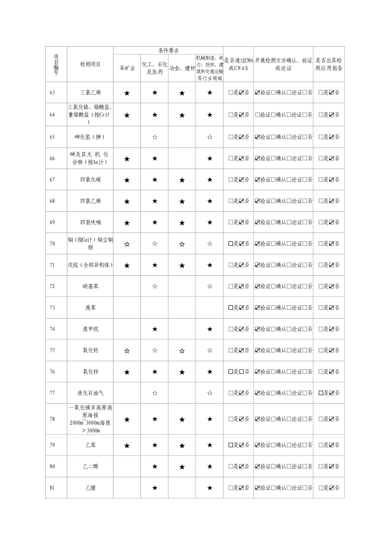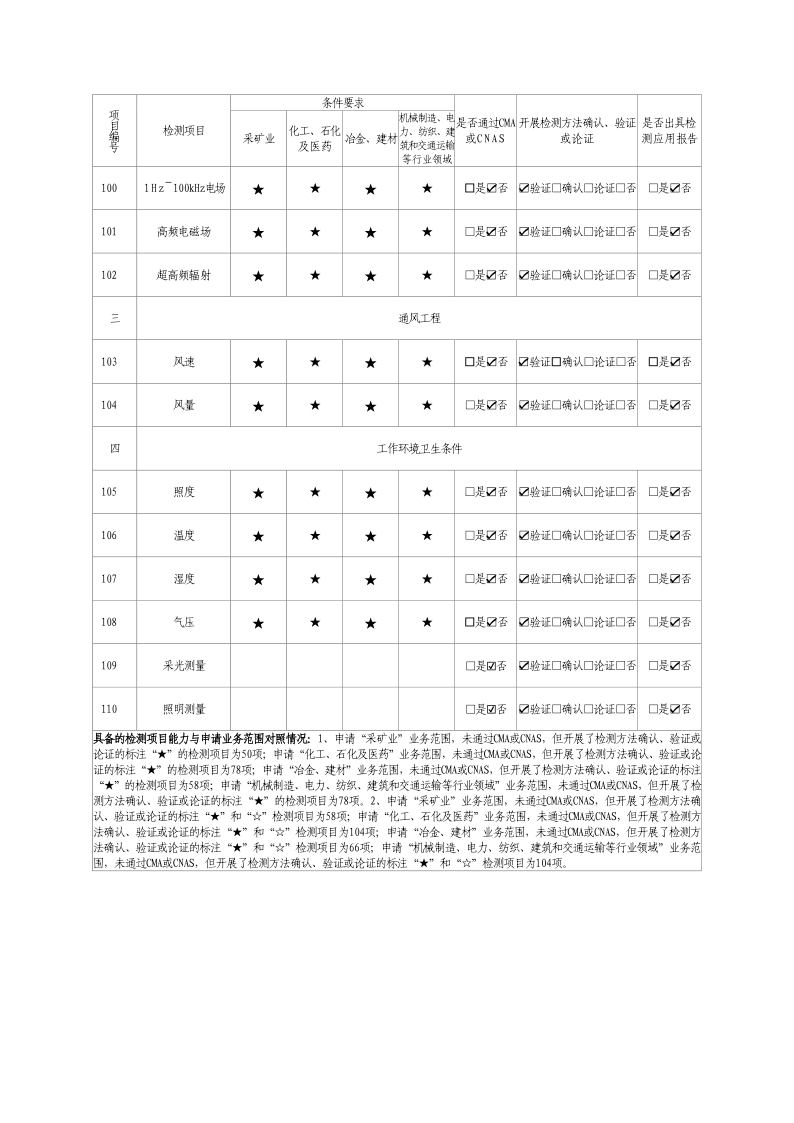 經(jīng)技術評審審核認定的檢測項目(第一類業(yè)務 合計110項)