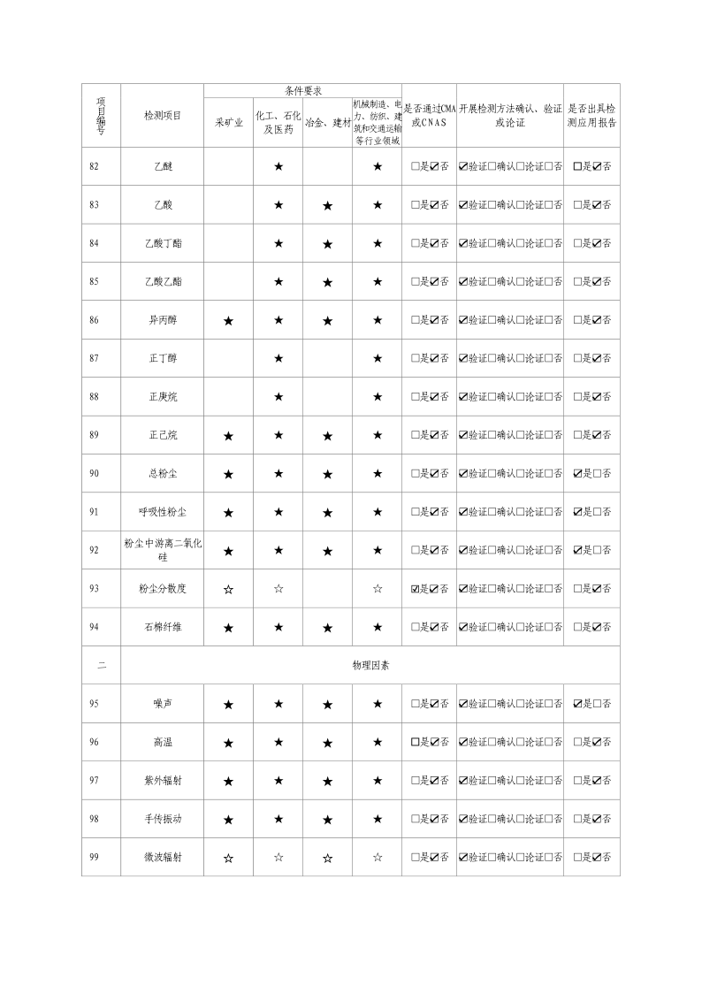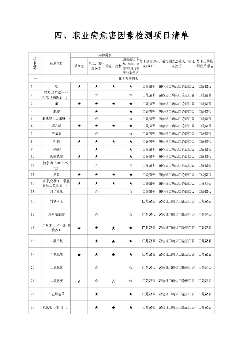 2024年職業(yè)衛(wèi)生技術服務機構資質證書及職業(yè)病危害因素檢測項目清單