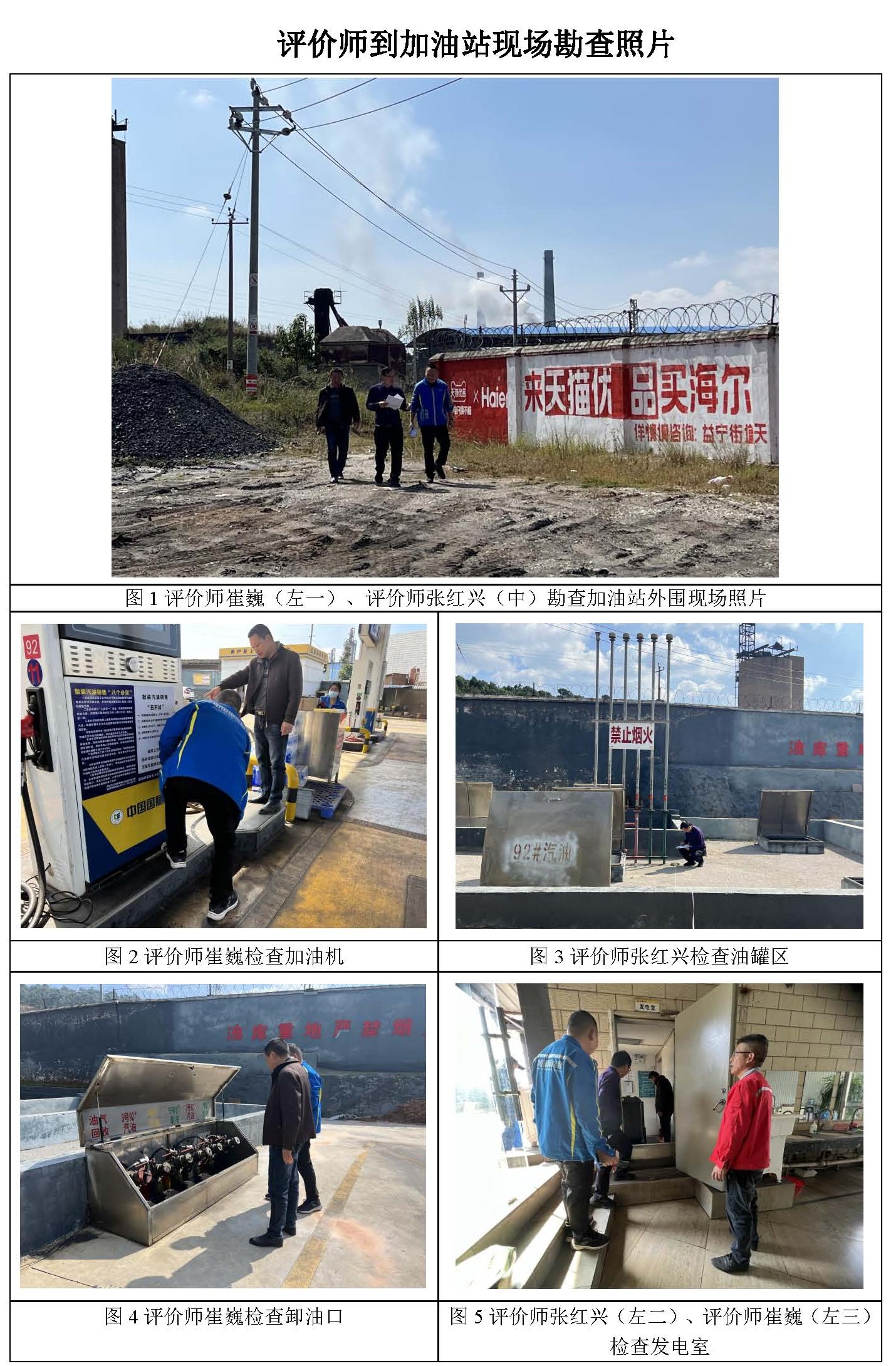 現場勘查情況 | 無人機航拍加油站及周邊平面照片,查看加油站周邊環境,查看加油區、油罐區、液位計、配電室現場情況,查看安全管理資料。 | |||||||