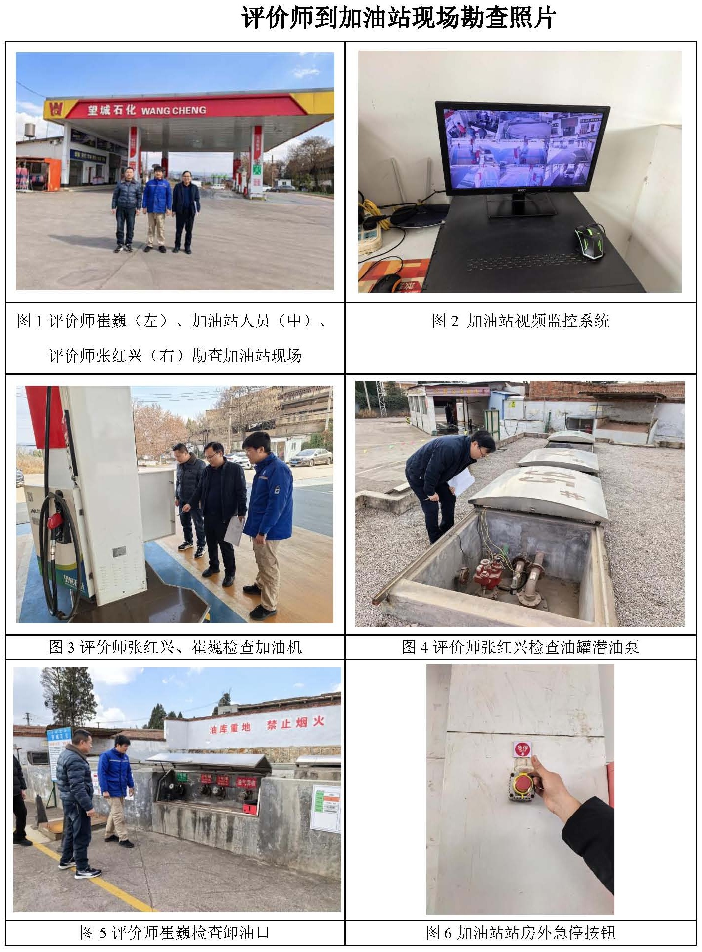 評價結(jié)論為:曲靖市沾益區(qū)望城加油站已完成本次評價發(fā)現(xiàn)的不符合項整改,站址選擇及平面布置、加油工藝及設(shè)施、消防設(shè)施、電氣及報警系統(tǒng)、建(構(gòu))筑物等方面符合《汽車加油加氣加氫站技術(shù)標準》(GB50156-2021)、《加油站作業(yè)安全規(guī)范》(AQ3010-2022)標準規(guī)定;經(jīng)營場所、危險化學(xué)品儲存設(shè)施、人員配置及培訓(xùn)考核、安全管理制度、安全操作規(guī)程、應(yīng)急預(yù)案、應(yīng)急物資等滿足《危險化學(xué)品安全管理條例》(國務(wù)院令第591號,第645號修改)第三十四條、《危險化學(xué)品經(jīng)營許可證管理辦法》(原國家安監(jiān)總局令第55號公布,第79號修正)第六條要求,從安全的角度曲靖市沾益區(qū)望城加油站具備危險化學(xué)品經(jīng)營的安全條件。