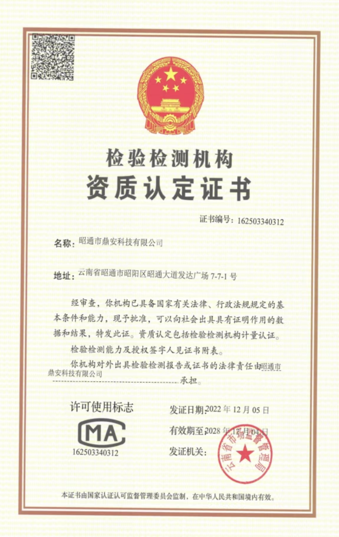 檢驗檢測機構(gòu)資質(zhì)認定證書