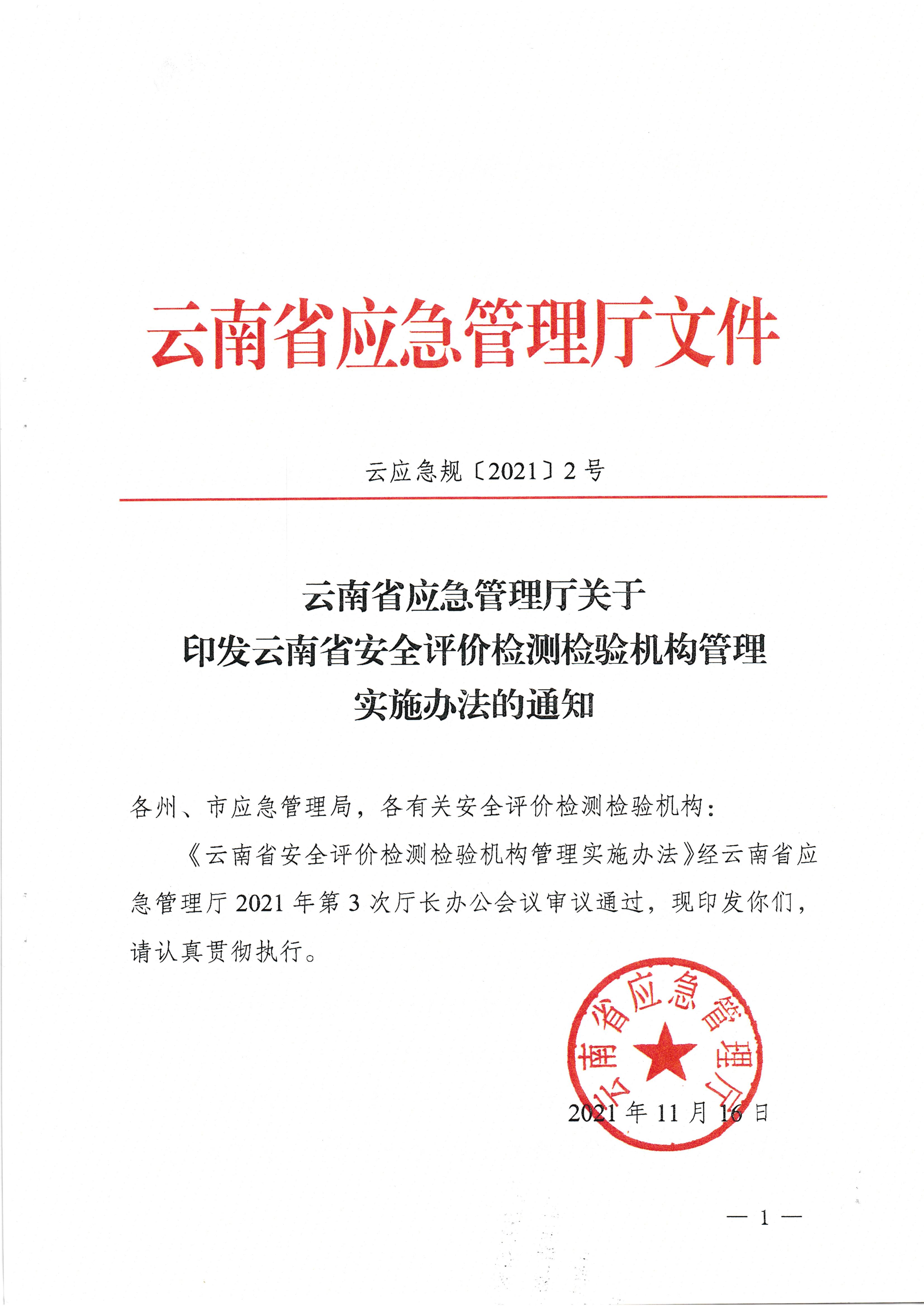 云南省應急管理廳關于印發云南省安全評價檢測檢驗機構管理實施辦法的通知