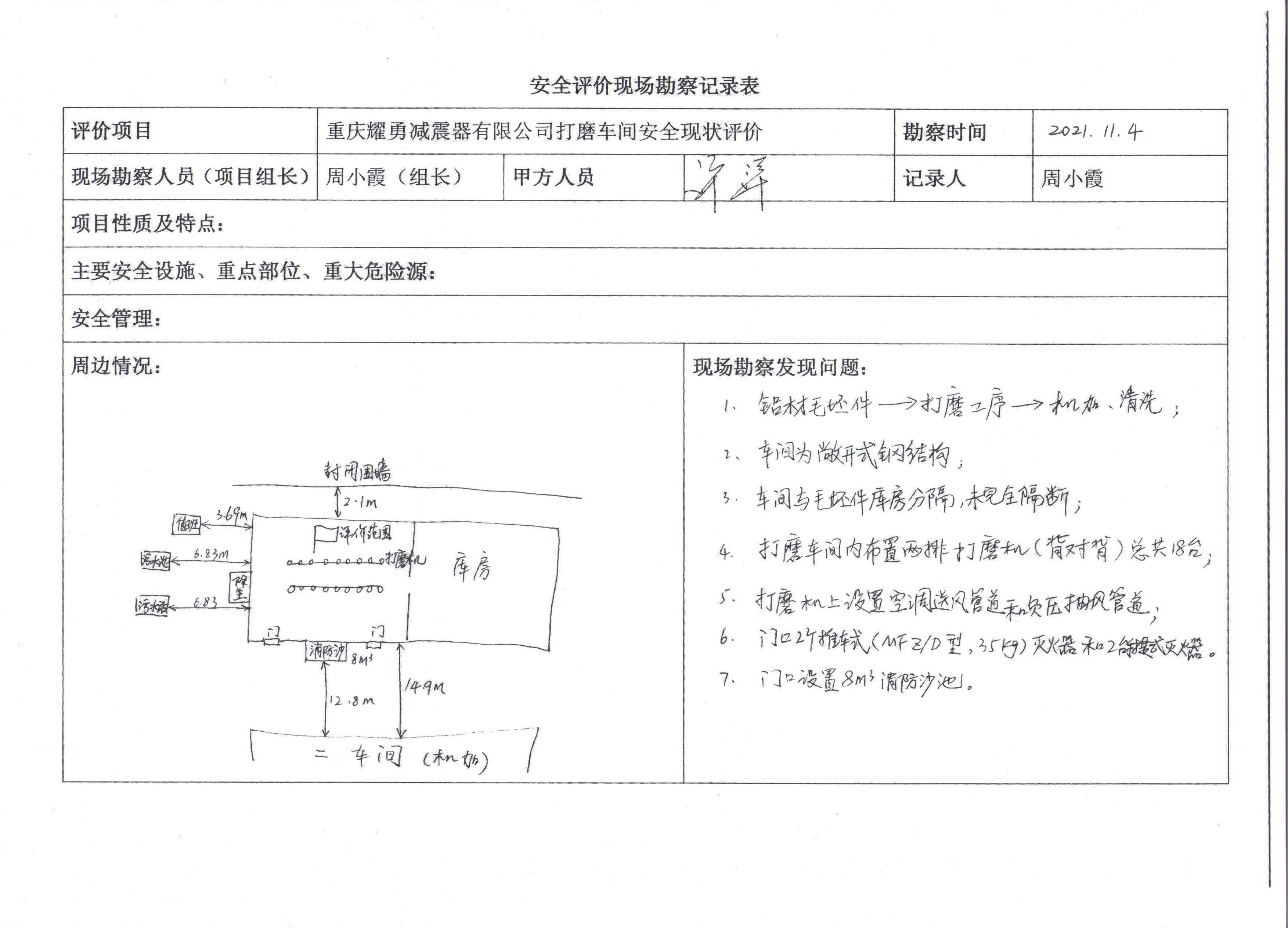 重慶耀勇減震器有限公司打磨車間安全現(xiàn)狀評(píng)價(jià)報(bào)告